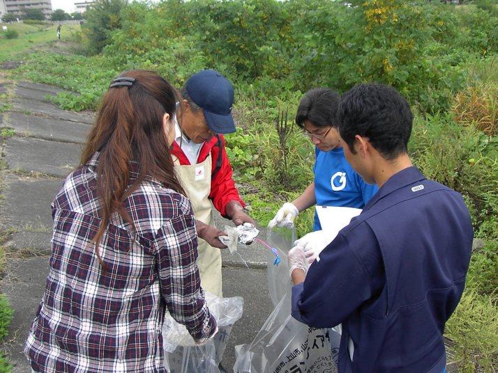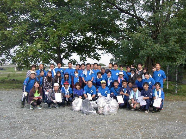 馬見ヶ崎川河川敷のごみ回収調査に社員45名で参加しました。